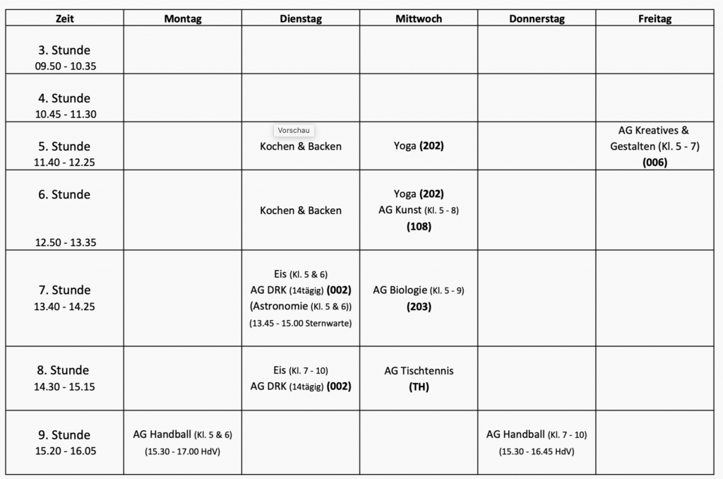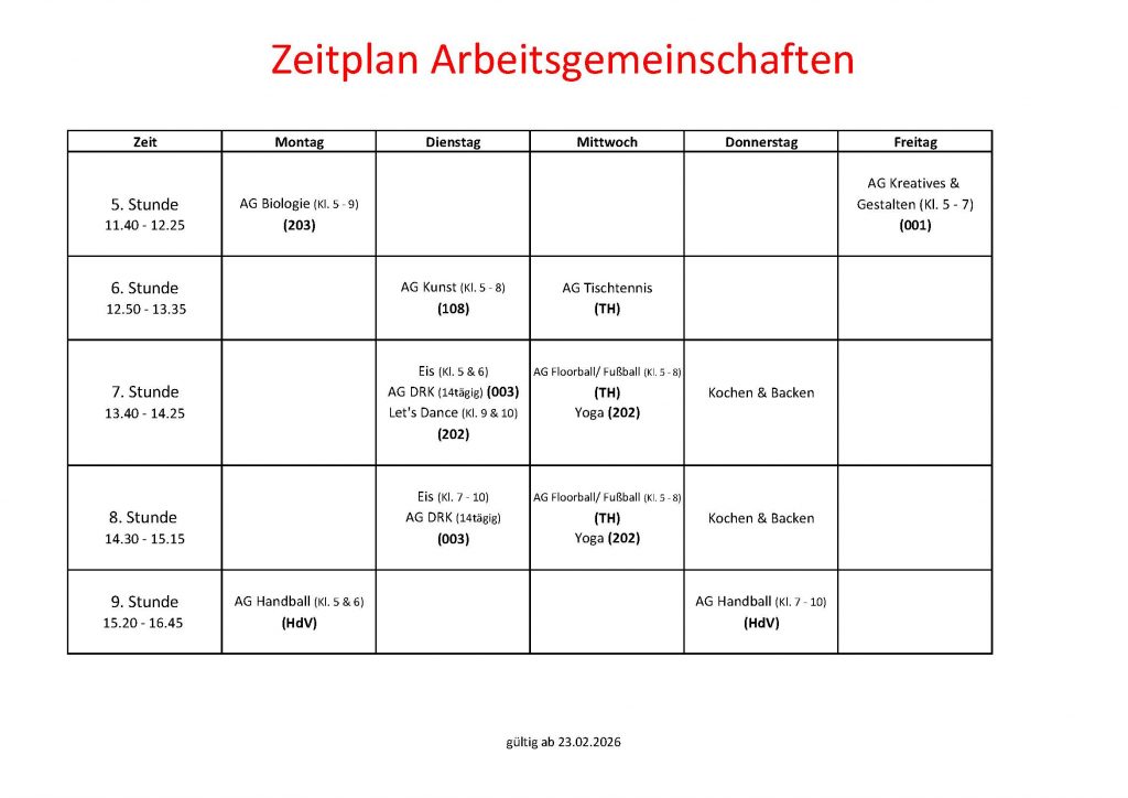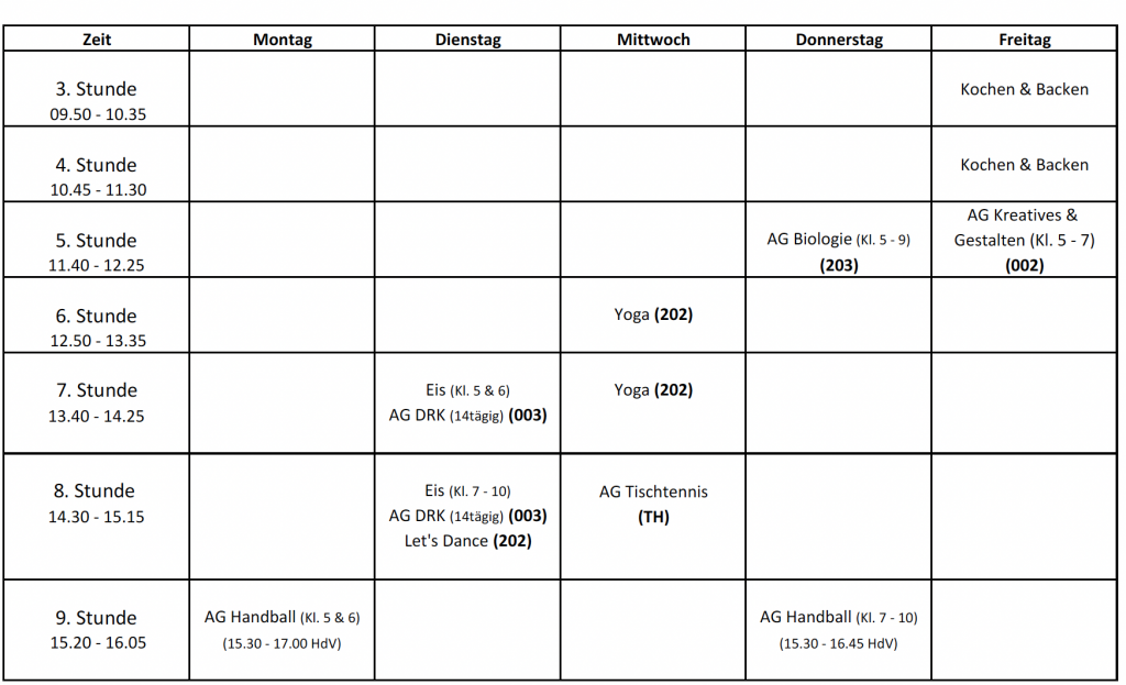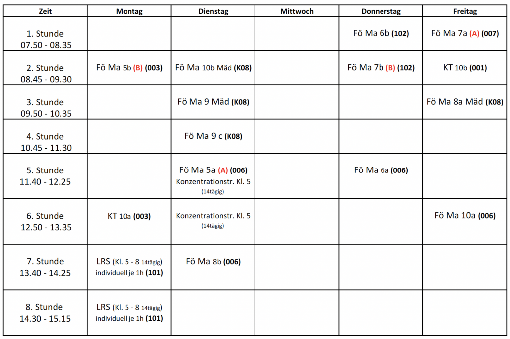 Unterrichtszeiten