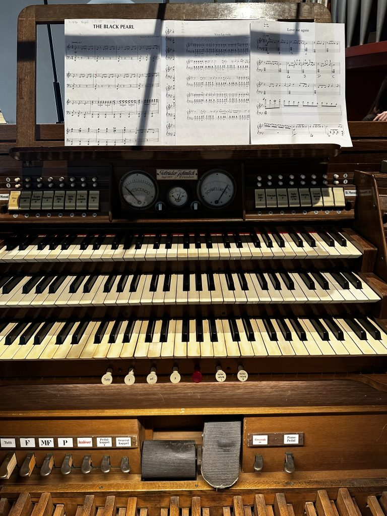 Das Highlight war für viele aber das eigene Ausprobieren. Mutige durften sich selbst an die Orgel setzen und versuchen, gleichzeitig mit beiden Händen auf den Tasten und mit den Füßen auf dem Pedal zu spielen – gar nicht so leicht, wie es aussieht!