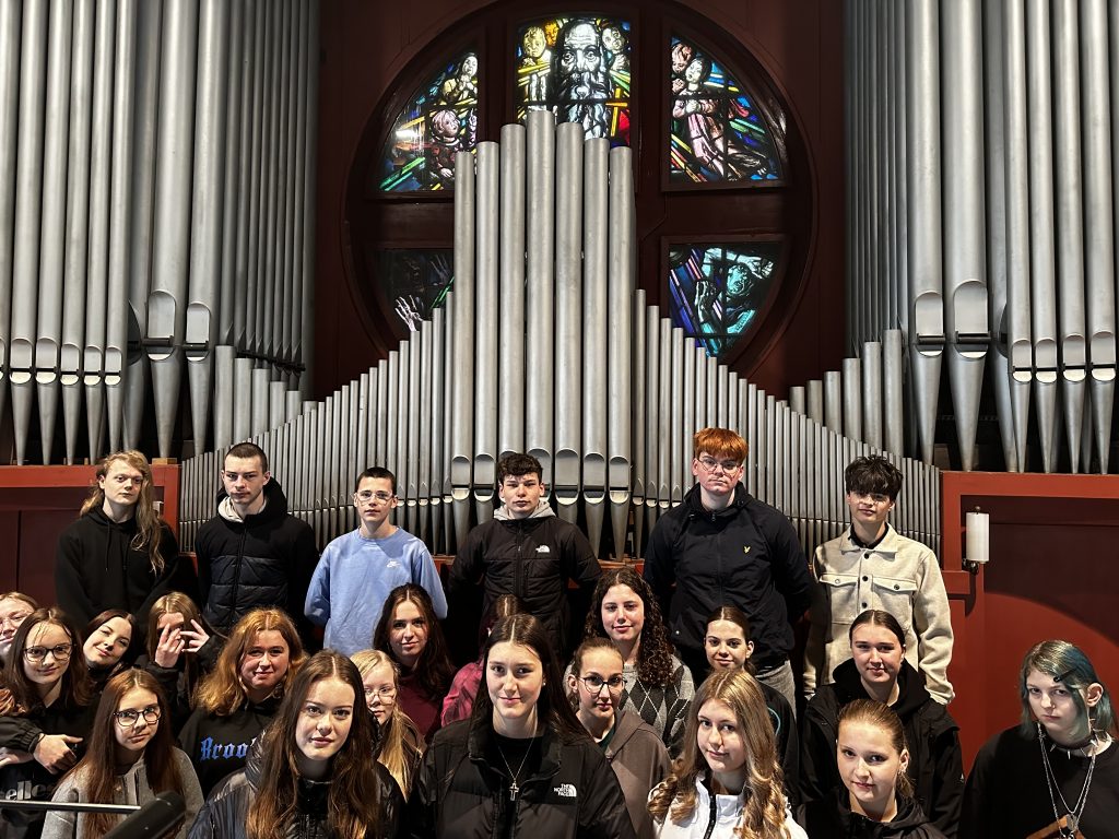 Die Klassen 8b sowie 9a und 9b haben im Musikunterricht die Orgel der Lutherkirche in Crimmitschau besucht und dabei ein besonderes Instrument aus nächster Nähe kennengelernt. Vor Ort wurde erklärt, wie die Orgel funktioniert und welche Mechanik hinter den vielen Manualen, Registern und Pfeifen steckt.