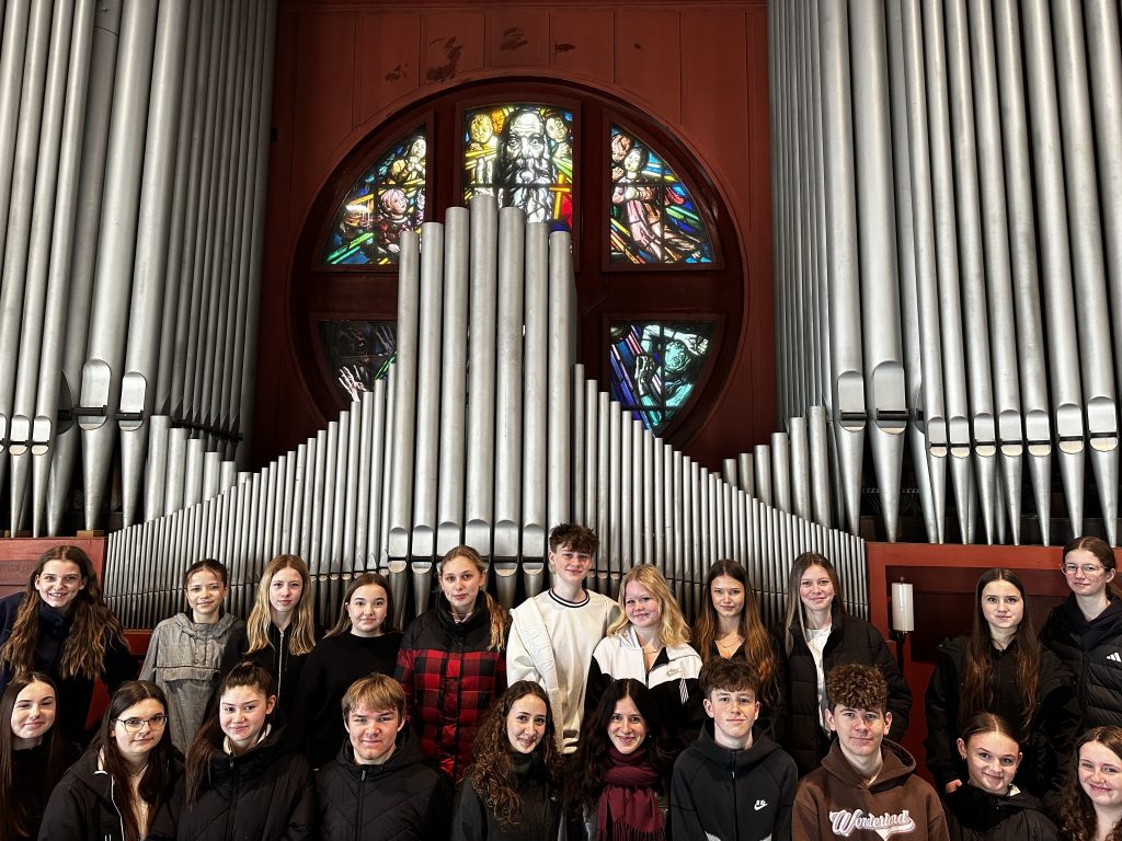 Natürlich konnten die Schülerinnen und Schüler auch hören, wie die Orgel klingt: Es wurden verschiedene Stücke vorgespielt, sodass der volle Klang im Kirchenraum gut zur Geltung kam.
